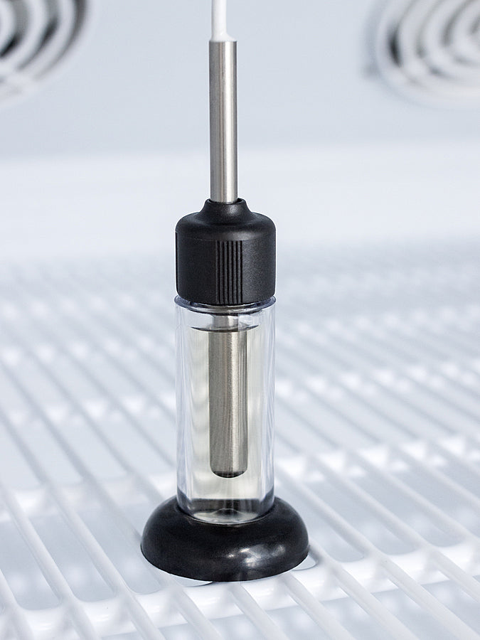 We also include our DL2B digital data logger to be mounted to the door, a feature recommended by the CDC, VFC and VFA for vaccine storage. This password-protected DDL is NIST calibrated in our ISO/IEC 17025:2017 accredited laboratory and offers a large LCD display of the current and high/low temperature, recording up to 32,000 data groups to its internal memory or even more on the included 4GB USB flash drive. Data can be viewed through a PC or Mac in Microsoft Excel or any .CSV compatible program. Users can set their own recording intervals starting at increments of 10 seconds to best meet a facility's specific logging needs. We include a 2-year certificate of calibration beginning the date of manufacture. The logger can be re-calibrated in our laboratories after the certificate expires. (For additional information on the DDL, see the DL2BKit listing on our website.)