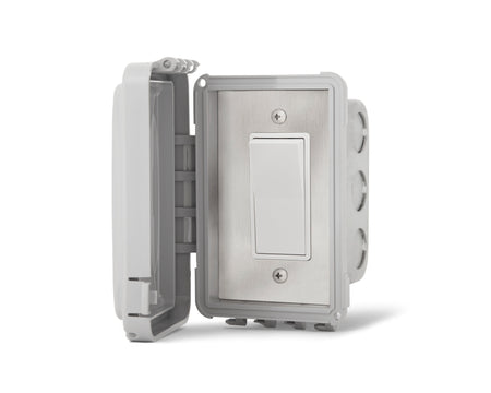 This simple On/Off switch can be used to control your W Series heater. This switch comes with a weatherproof cover, stainless steel faceplate, and gang box for in-wall exposed exterior locations.