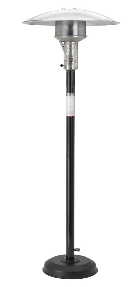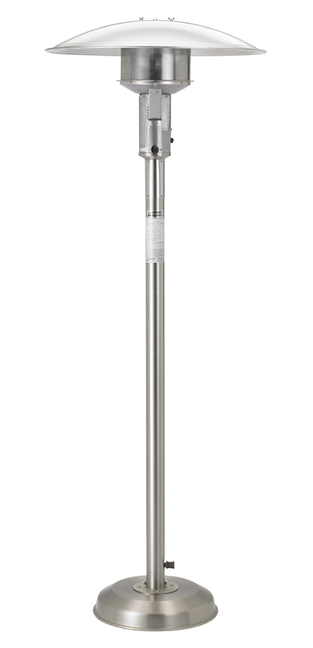 This heater offers a large deep disk aluminum reflector for maximum comfort, a primary aerated burner for minimal noise, and 100% safety shutoff.