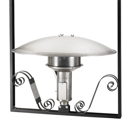 This heater offers a large deep aluminum disk reflector for maximum comfort, a primary aerated burner to minimize noise, and 100% safety shutoff. The wrought iron frame with classic metal scroll design comes in a black powder coat finish.