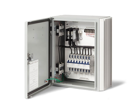 All main relay panels are project specific and include a NEMA 4/12 enclosure with a custom aluminum heat sink, terminal block, UL 489 breakers, and pre-assembled. Control panels are UL 508 listed. Works in conjunction with analog control assembly.