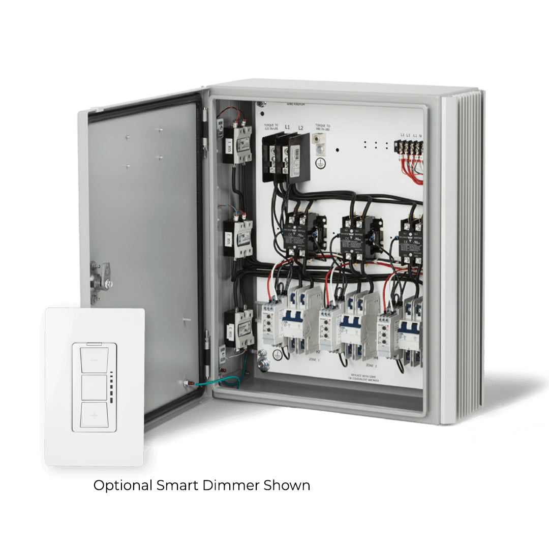 Scalable Zone & Dimming Control – Panels are available in single to multi-relay configurations (up to 6 relays) with 0-100% dimming capability and built-in timer, ideal for residential or commercial outdoor heating systems.