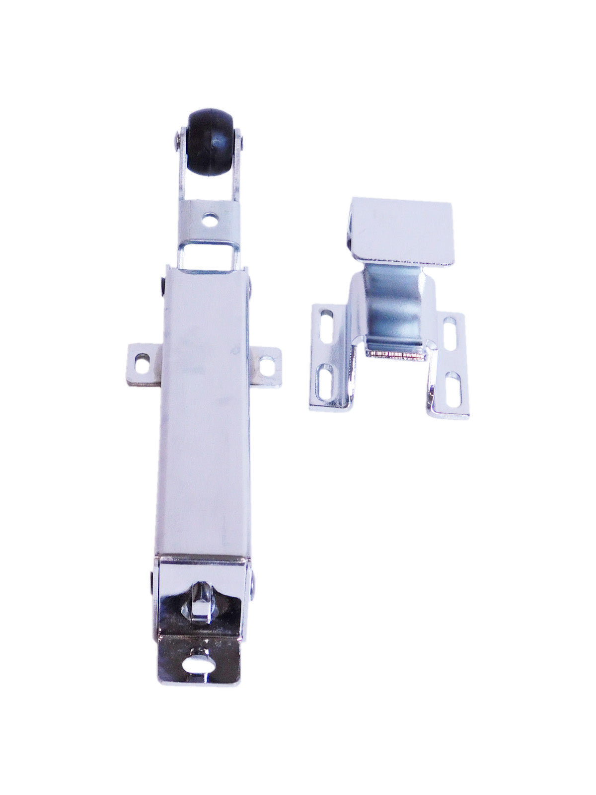 - Mounting slots on hook allow for easy adjustment to compensate for door sag, keeping roller aligned with hook for proper function
