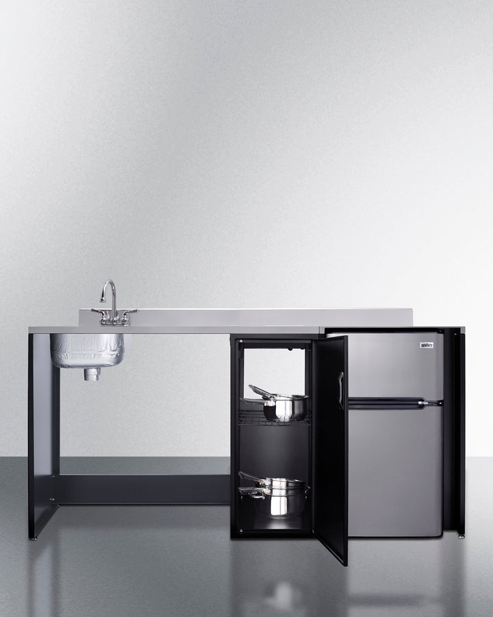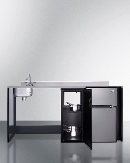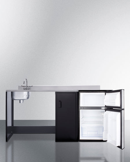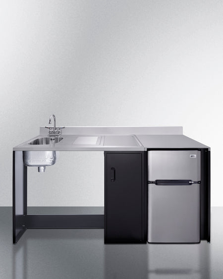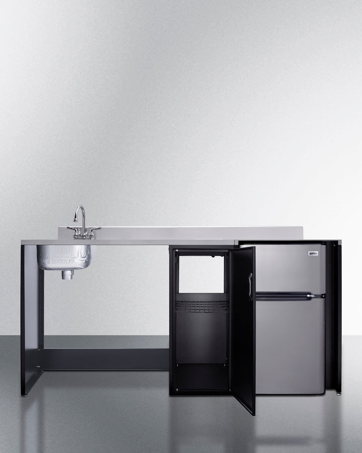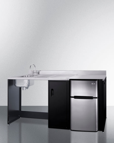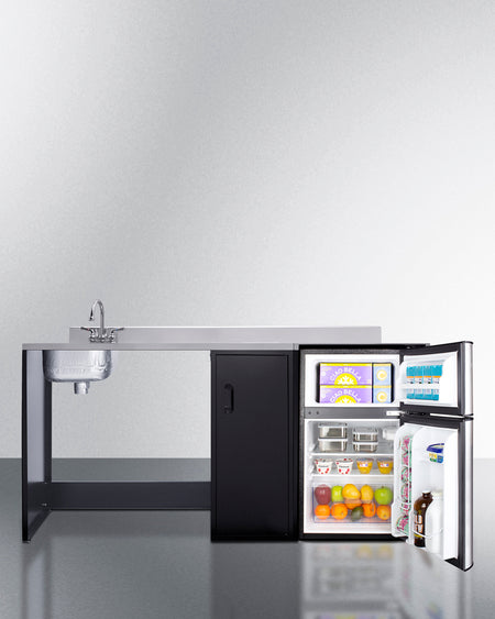 Summit CK72ADALBFNCK 72″ Wide Barrier-Free All-In-One Kitchenette – ADA-Compliant Refrigerator-Freezer, Sink & Storage (Black/Stainless Steel)