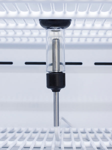 We also include our DL2B digital data logger to be mounted to the door, a feature recommended by the CDC, VFC and VFA for vaccine storage. This password-protected DDL is NIST calibrated in our ISO/IEC 17025:2017 accredited laboratory and offers a large LCD display of the current and high/low temperature, recording up to 32,000 data groups to its internal memory or even more on the included 4GB USB flash drive. Data can be viewed through a PC or Mac in Microsoft Excel or any .CSV compatible program. Users can set their own recording intervals starting at increments of 10 seconds to best meet a facility's specific logging needs. We include a 2-year certificate of calibration beginning the date of manufacture. The logger can be re-calibrated in our laboratories after the certificate expires. (For additional information on the DDL, see the DL2BKit listing on our website.)