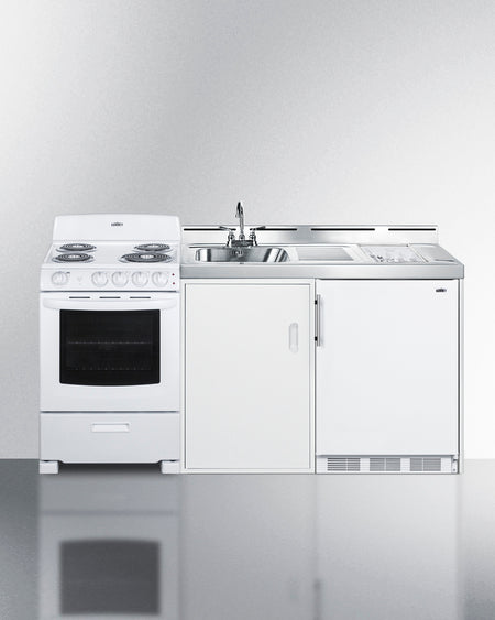 Summit ACK72COILW 72″ Wide All-in-One Kitchenette – White Finish, Electric Coil Range, Refrigerator-Freezer & Sink