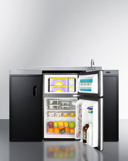 Unlike many other brands' kitchenettes, all Summit units include a refrigerator with a freezer compartment to cover all of your cold storage needs. The CK55ADASINKR includes the two-door, ENERGY STAR certified CP34BSS, with 3.2 cu.ft. of storage space. A dual evaporator system separately cools the auto defrost refrigerator section and manual defrost freezer compartment for improved overall performance. This model also includes an adjustable glass shelf, door storage, and a crisper.