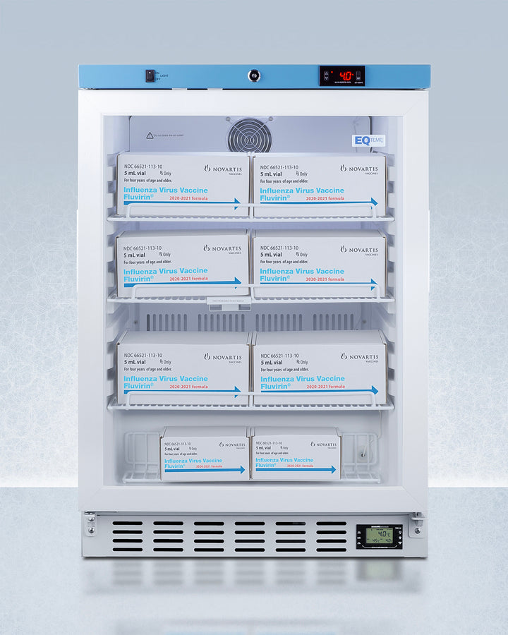 Summit ACR52GNSF456 24″ Wide Built-In/Freestanding Medical Refrigerator – 3.88 cu. ft Capacity, Glass Door, +2 °C to +8 °C Range, NSF/ANSI 456 Certified – White Cabinet