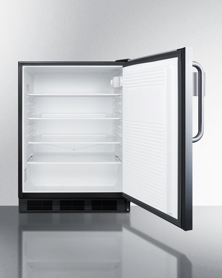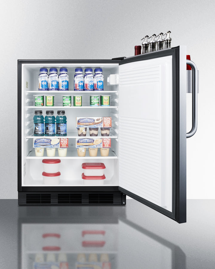 Summit FF7BKBISSTBADASR 24″ Wide ADA-Height Built-In Commercial Refrigerator with Speed Rail – Black Cabinet, Stainless Steel Door