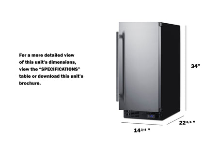 Summit SCFF1533BSS 15″ Wide Built-In All-Freezer – Stainless Steel Door, Black Cabinet