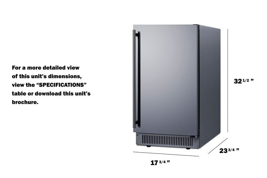 In addition to this icemaker, Summit manufactures drain-free choices, as well as traditional 15-inch wide icemakers and a full assortment of matching 18-inch wide refrigerators, beverage centers, and wine cellars. Browse the complete lineup to complete any residential or commercial undercounter space.