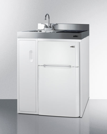 Summit C30IND 30″ Wide All-in-One Kitchenette – Induction Cooktop, Sink & 3.2 cu ft Refrigerator–Freezer – White Finish