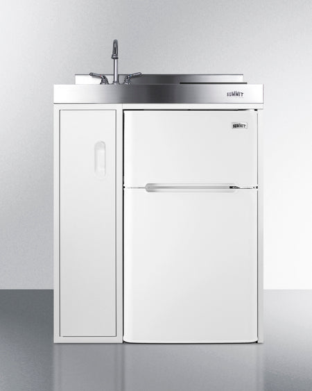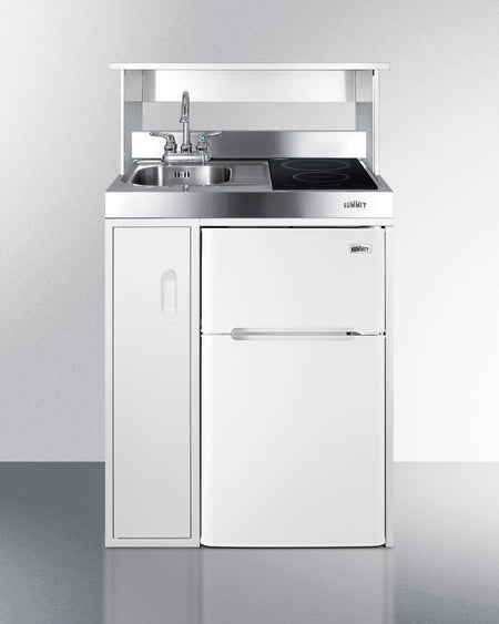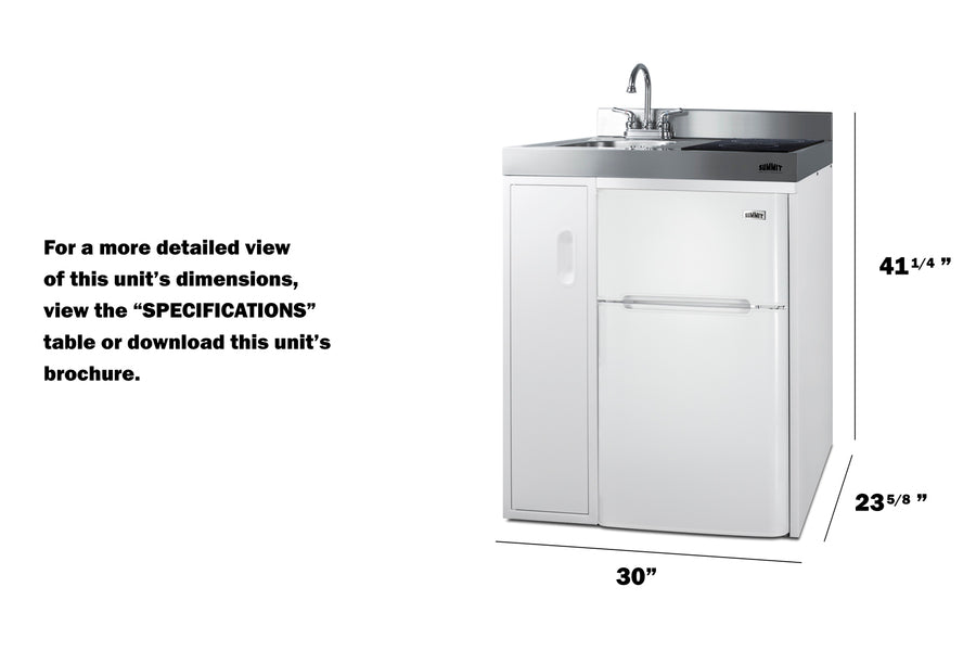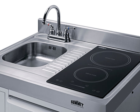 The C30IND is fully featured with everything you need for the perfect food service experience in smaller spaces. This unit ships in one piece fully assembled with a sink and faucet, storage cabinet for dry goods, stainless steel countertop and backguard, 2-zone induction cooktop (SINC2B115), and two-door refrigerator-freezer (CP34W).