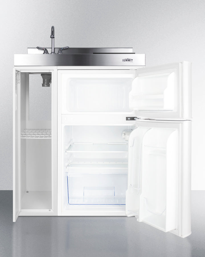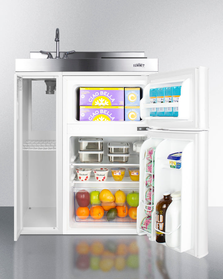 Unlike many other appliance brands and manufacturers' kitchenettes, all Summit units include a refrigerator with a full freezer compartment to cover all of your cold storage needs. The C30IND consists of the two-door, ENERGY STAR certified CP34W, with 3.2 cu.ft. of storage space. A dual evaporator system separately cools the auto-defrost refrigerator section and manual defrost freezer compartment for improved overall performance. This model also includes an adjustable glass shelf, door storage, and a crisper.