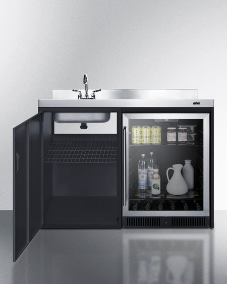 For this unit with a sink on the right side, see model CK48NCSINKR. In addition to this model, Summit also manufactures kitchenettes with full cooking capabilities, portable weatherproof bars for outdoor entertaining, and a full assortment of hardwood wet and dry bars from our Turnkey collection.