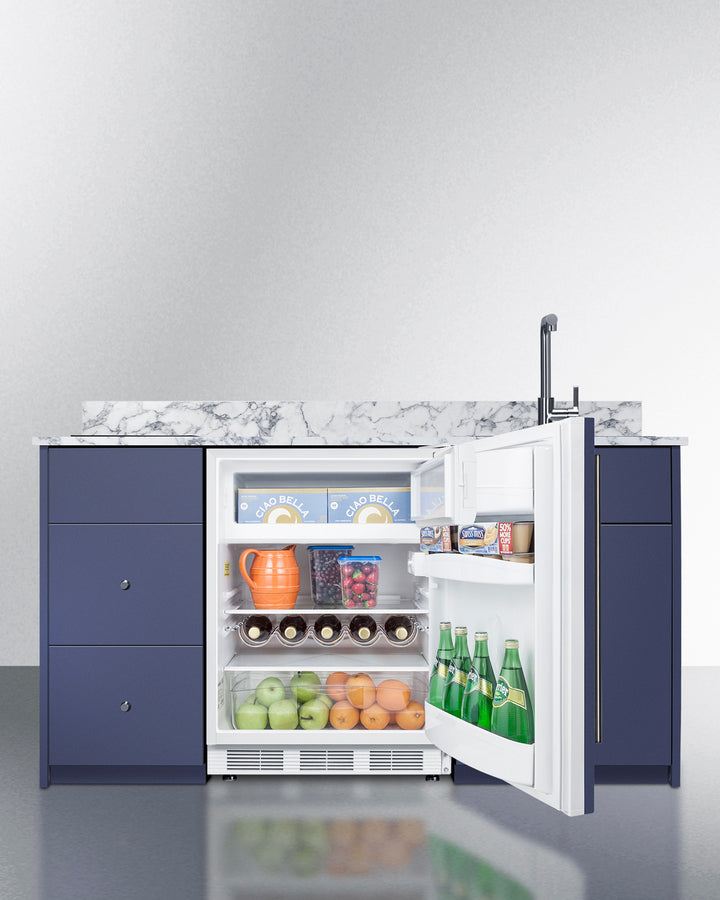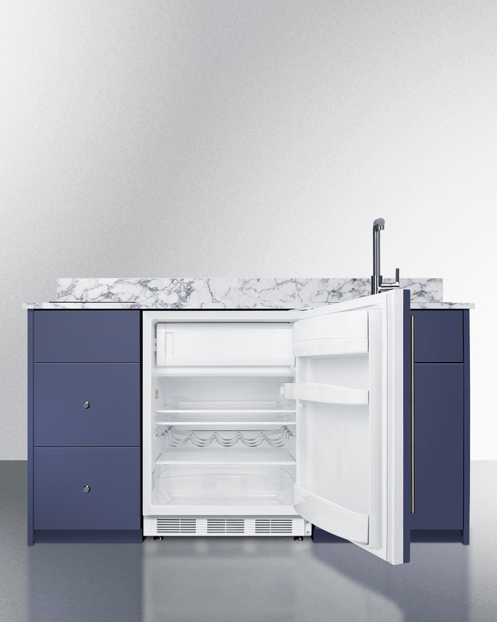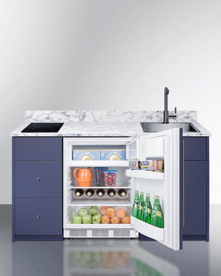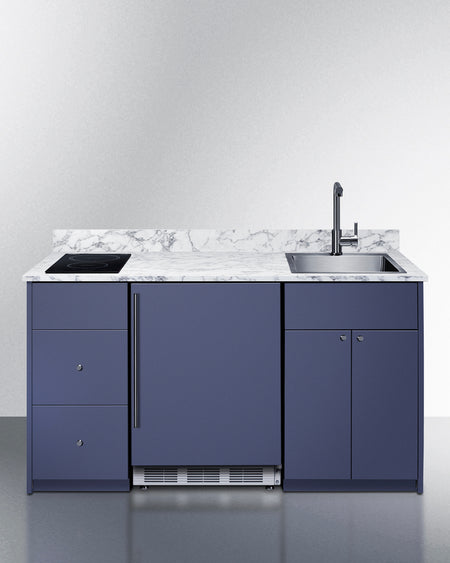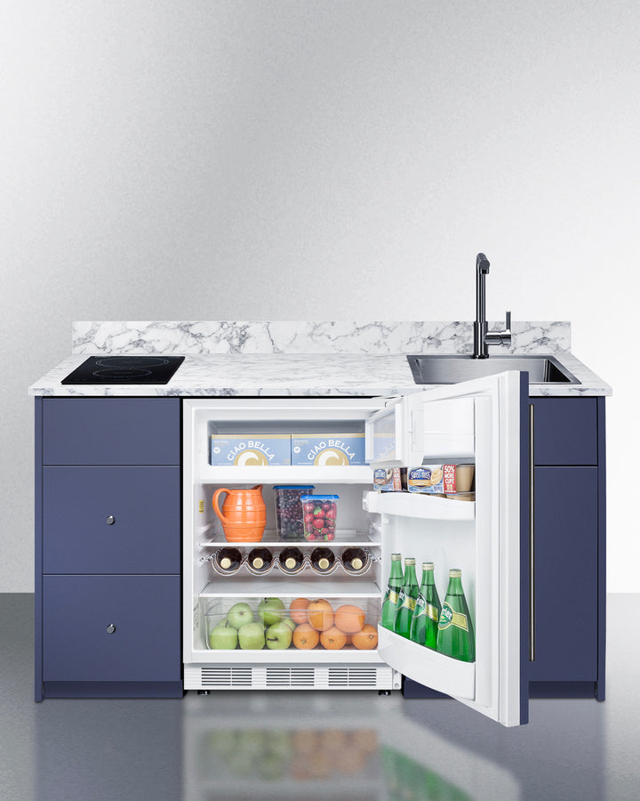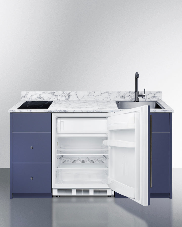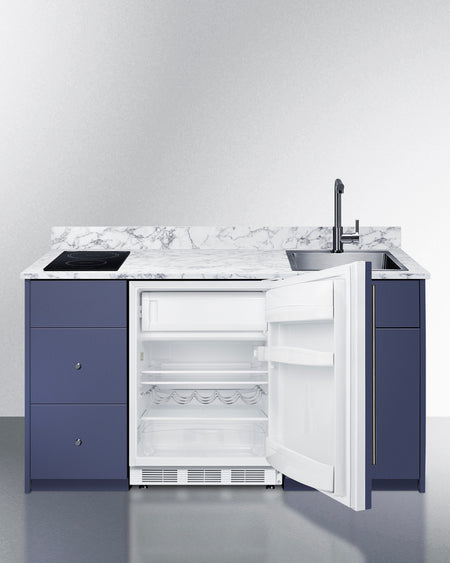 Summit CALDERAMN33I 62.5″ Wide Turn-key Caldera Kitchenette – Midnight Navy Finish, Fully-Assembled Cabinetry + 2-Zone Induction Cooktop + 24″ Refrigerator/Freezer + Stainless-Steel Sink