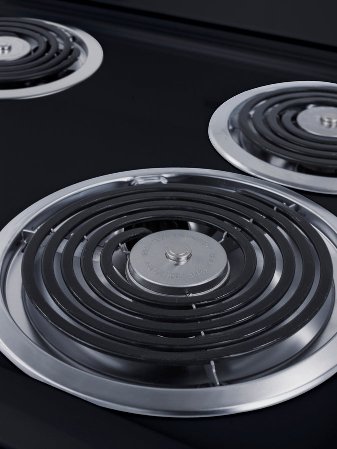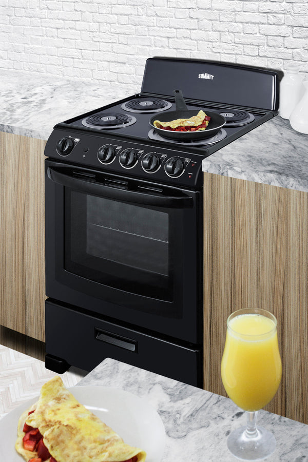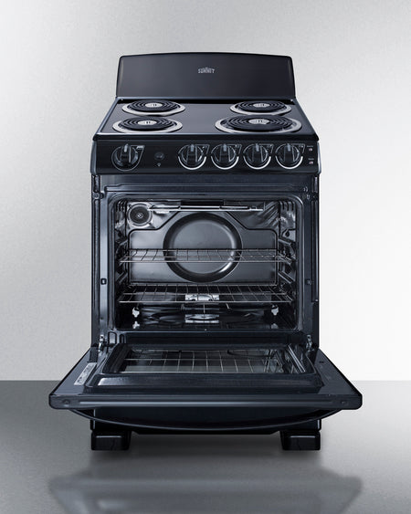 Summit RE2413B 24″ Wide Electric Coil Range – 4 Burners, 2.9 cu ft Oven, Black Finish