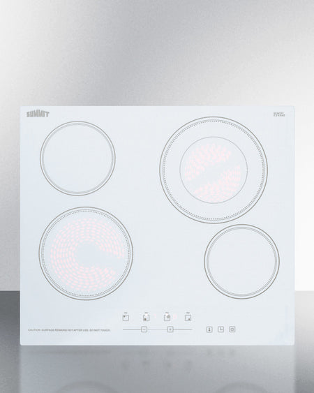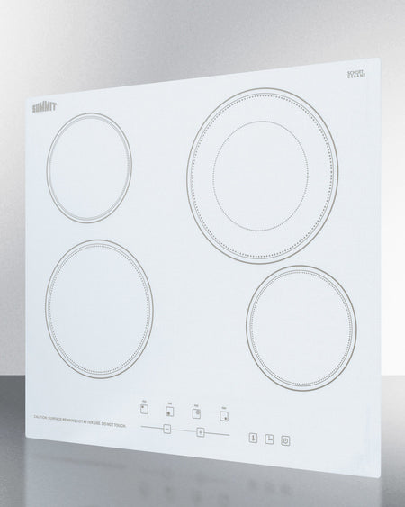 Summit CR4B23T6W 24″ Wide 4-Burner Electric Radiant Cooktop – White Schott Glass, Digital Touch Controls, 2200 W Large Element
