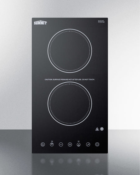 Summit CR2B15T1B 12″ Wide 2-Burner Electric Radiant Cooktop – Black Schott Glass Surface, 115 V, Built-In Fit