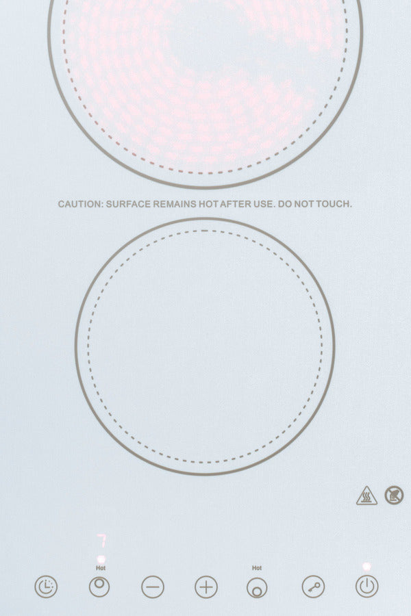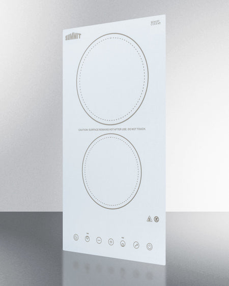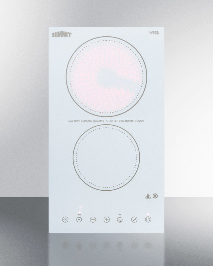 Summit CR2B23T4W 12″ Wide 2-Burner Radiant Electric Cooktop – White Schott Glass Surface, 230 V, Built-In Fit