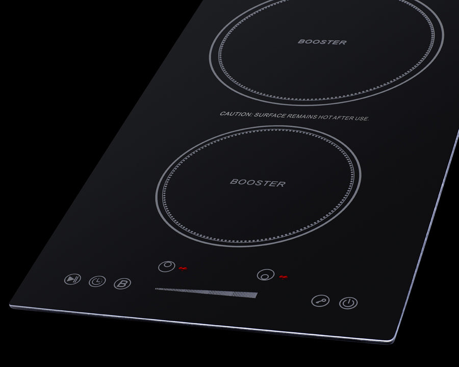 Summit SINCH230V2B 12″ Ultra-Slim Induction Cooktop – 2-Zone, Hard-Wire 208-240 V, Black EuroKera Glass