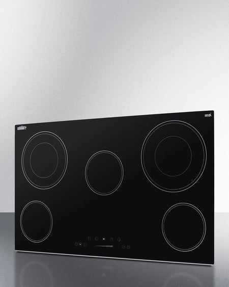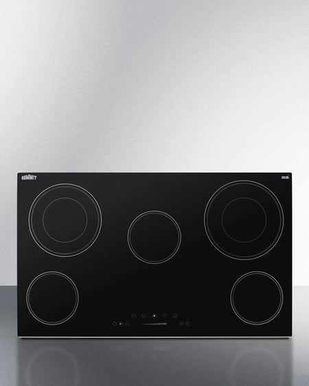 Summit CR5B36T9B 36″ Wide 208-240 V 5-Burner Radiant Cooktop – Jet Black Glass Surface