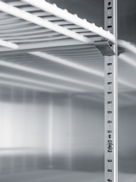 Inside, the ARS49ML utilizes adjustable cycle defrost operation to avoid temperature spikes, with a top-mounted forced air cooling system to ensure rapid temperature recovery. Eight vinyl-coated wire shelves on cantilevered clips allow you to accommodate virtually any sized item. The LED lighting displays automatically when the door is open, providing a full and energy efficient display.