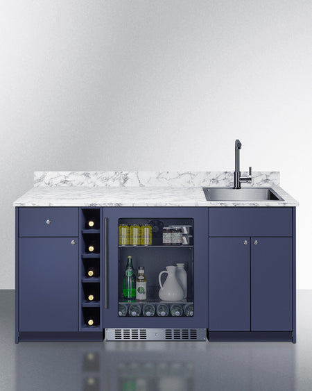 Summit OASISMN33 69″ Wide ADA-Height Turnkey Oasis Wet Bar – Midnight Navy Finish, Pre-Assembled Cabinetry + Beverage Center