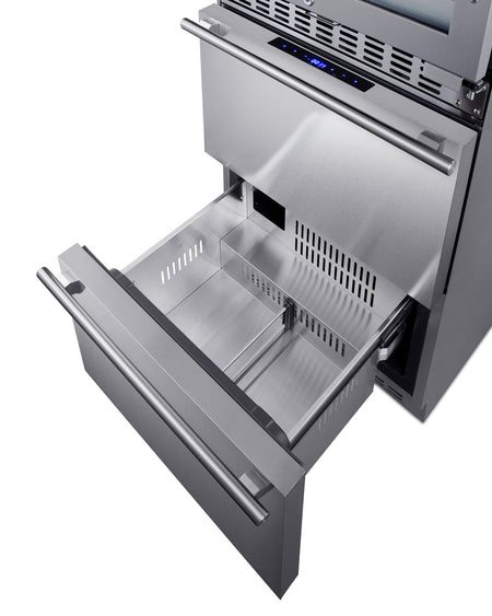 Summit SWCDRF24 24″ Wide Dual-Zone Wine Cellar + 2-Drawer Refrigerator / Freezer — Stainless Steel Cabinet & Glass Door