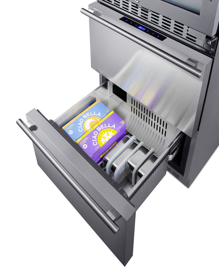 Summit brings an innovative, elegant solution to store wine, food, and beverages with its combination two-zone wine cellar and two-drawer refrigerator-freezer - the perfect entertainment station for the home.