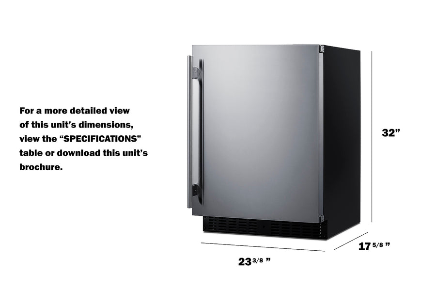 Summit ASDS2413 24″ Wide Built-In All-Refrigerator – ADA-Height, 3.1 cu ft, Stainless Steel Door, Black Cabinet