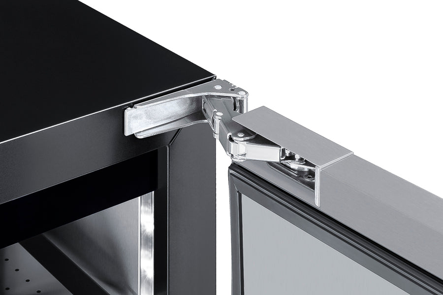 Model ASDS2413 is a 24" wide all-refrigerator sized under 18" deep. It comes in a 32" height to fit under lower ADA compliant counters, with adjustable legs and a sliding kickplate cover that also allows you to raise the overall height up to 34" to fit standard counter spaces. The front-breathing system allows built-in installation, while the fully finished black cabinet also allows freestanding use. This unit has a sealed rear and right angle cord for a better fit. The stainless steel wrapped door is user-reversible and includes a front lock and pro style handle.