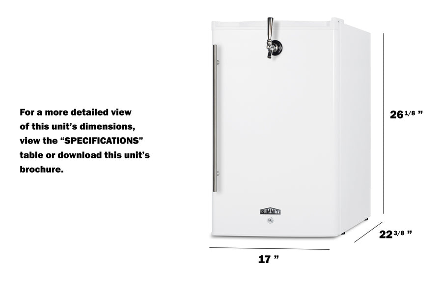 Model FF31L7FRTP is ETL-S listed to NSF-7 commercial standards. With its compact size and quality construction, it’s the perfect mini kegerator for commercial venues serving small batches of beer on tap. To serve cold brew coffee, see model FF31L7FRTPC. Additional kegerators are available for outdoor use, as well as in built-in undercounter and ADA compliant sizes. Browse the full Summit product line or contact our product specialists to find the fit for your needs.