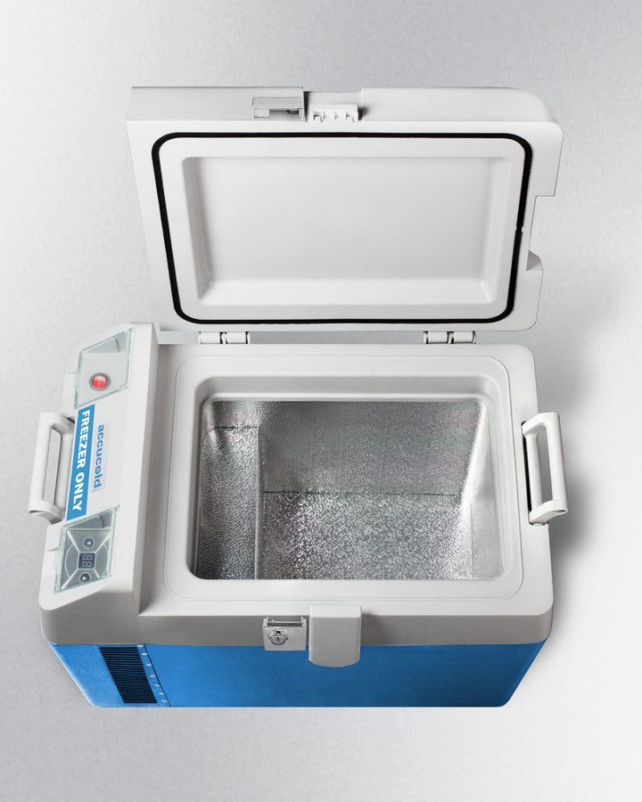 Accucold brings advanced convenience to on-the-go vaccine refrigeration with the SPFZ25M, a fully featured portable freezer ideal for transporting sensitive materials while maintaining the integrity of the cold chain.