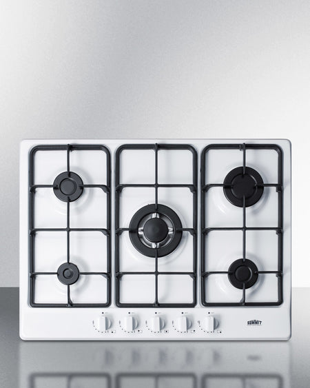 Summit GC5271W 27″ Wide 5-Burner Gas Cooktop – White Enamel Surface, Continuous Cast-Iron Grates