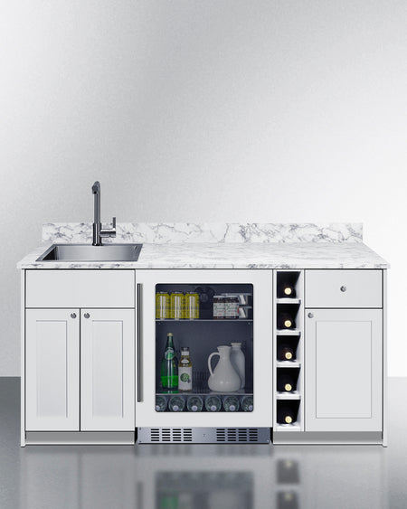 Summit OASISWH33SINKL 69″ Wide ADA-Height Turnkey Wet Bar – White Finish, Left-Side Stainless Steel Sink & Built-in Beverage Center