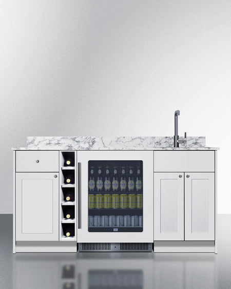 Summit OASISWH35 69″ Wide Turnkey Oasis Wet Bar – White Finish, Fully-Assembled Cabinetry + Beverage Center