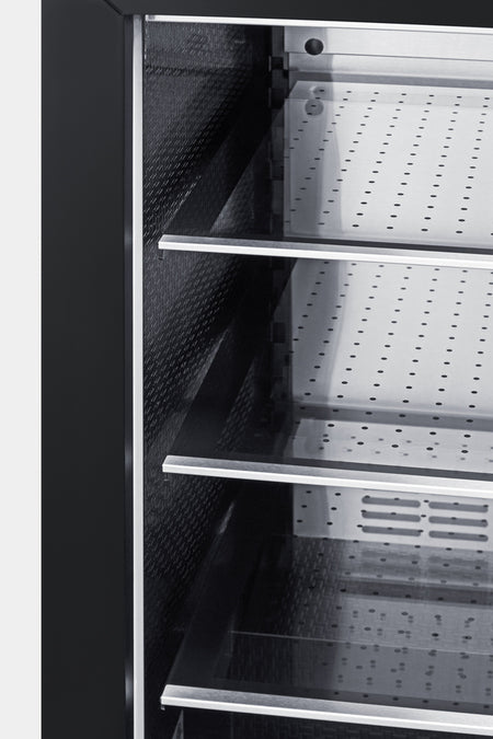 Inside, the CL24BV1PNR includes tri-colored LED lighting featuring amber, blue, and white options for versatile display. Three glass shelves ensure flexible storage to accommodate any size bottle. The angled digital thermostat makes it easy to view the temperature without opening the door. The unit's floor features a dipped flat design to allow you to store certain beverages upright. Additional features include an open door and high temperature alarm, sabbath mode setting, and inverter compressor for improved efficiency and quiet operation.