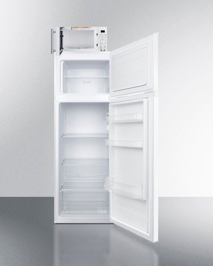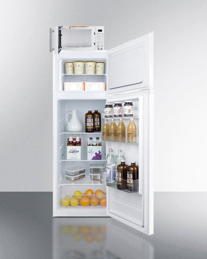 Summit MRF962A Mid-Size Refrigerator-Freezer + Microwave Combo – White Cabinet, One-Plug Operation