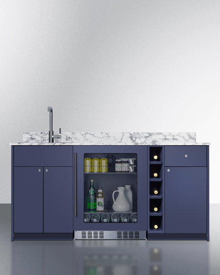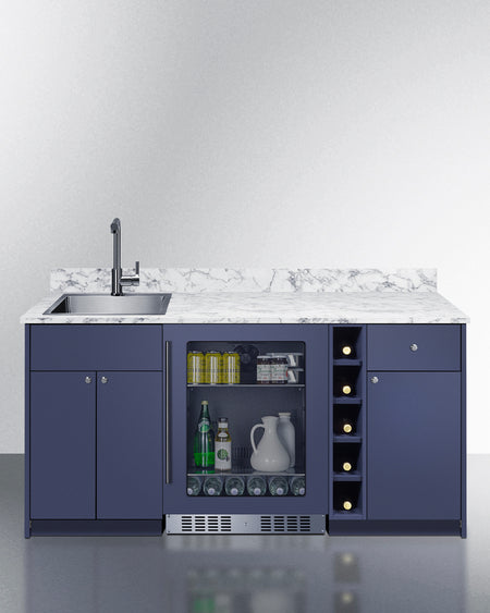Summit OASISMN33SINKL 69″ Wide ADA-Height Turn-key Wet Bar – Midnight Navy Finish with Left-Side Stainless Steel Sink