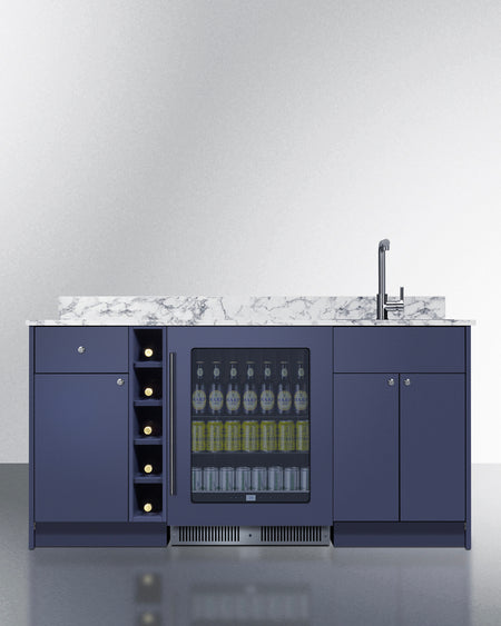 Summit OASISMN35 69″ Wide Turn-key Oasis Wet Bar – Midnight Navy Finish, Fully-Assembled Cabinetry + Built-In Beverage Center