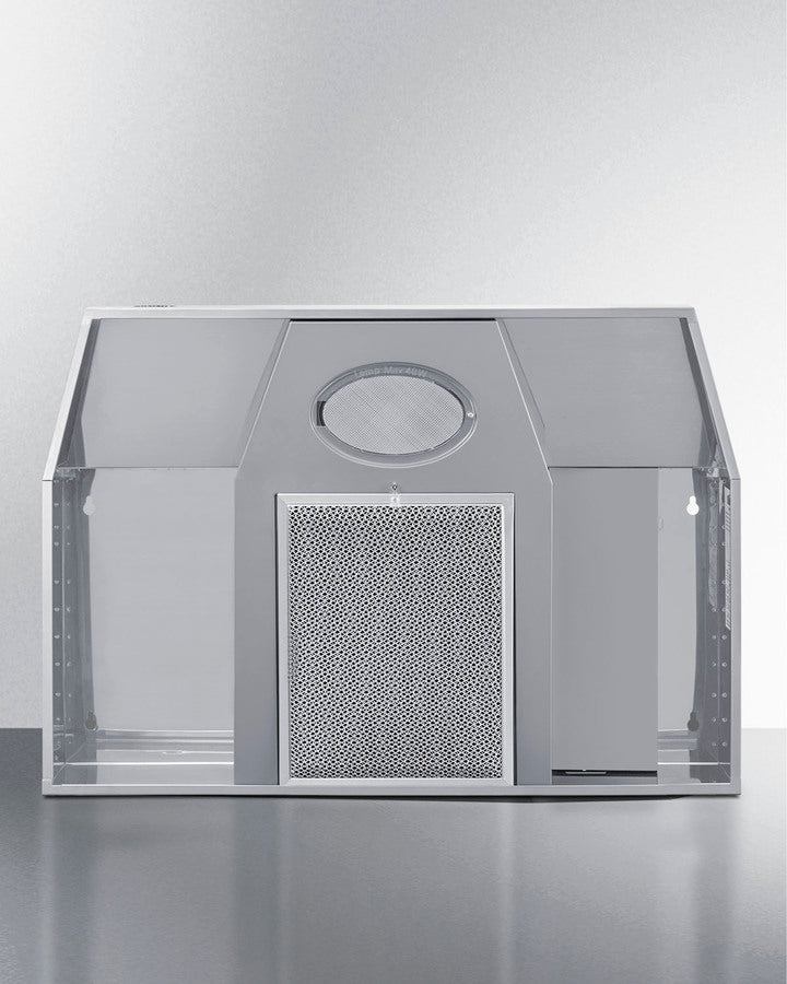 The H24RSS range hood ships set for ductless/recirculating use in kitchens without external exhaust options. It can be converted for ducted operation (rear or top venting) in one quick step. We include an aluminum mesh grease filter, as well as an activated carbon filter for recirculating applications. A pre-installed light bulb lets you illuminate your cooking surface with a simple rocker switch light. The fan has a high and low setting to best meet your ventilation needs. Stainless steel construction completes the look and complements the stove.