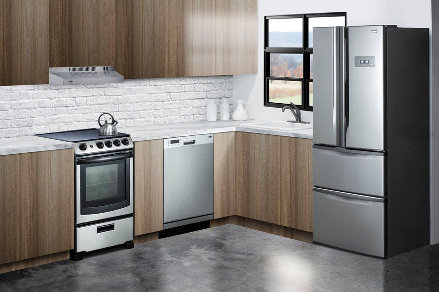 Summit lets you create the perfect small kitchen with our 24" wide range and hood sets.