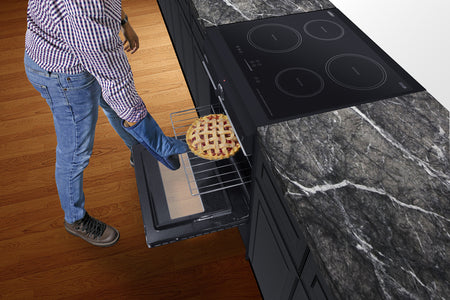 Model TEM665CW brings precise and efficient cooking to smaller kitchen spaces with a 24" footprint. The cooking surface features four induction zones, while the large electric oven offers nearly 3 cu.ft. of cooking space for baking and broiling. This unit comes in a jet black finish and no rear backguard for a slide-in look. It has a recessed oven door and is conveniently sized at just 24" deep for a better fit in galley in L-shaped kitchens, where every inch counts. A towel bar handle in brushed stainless steel provides an added touch of style to the oven door. This range requires professional installation with a standard 40 amp 3 or 4-prong cord.