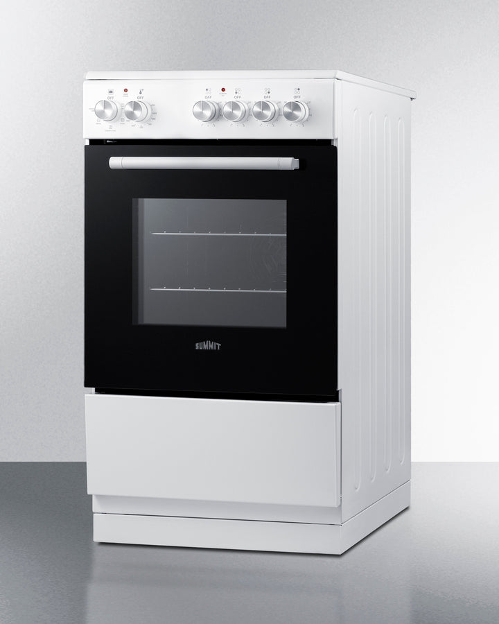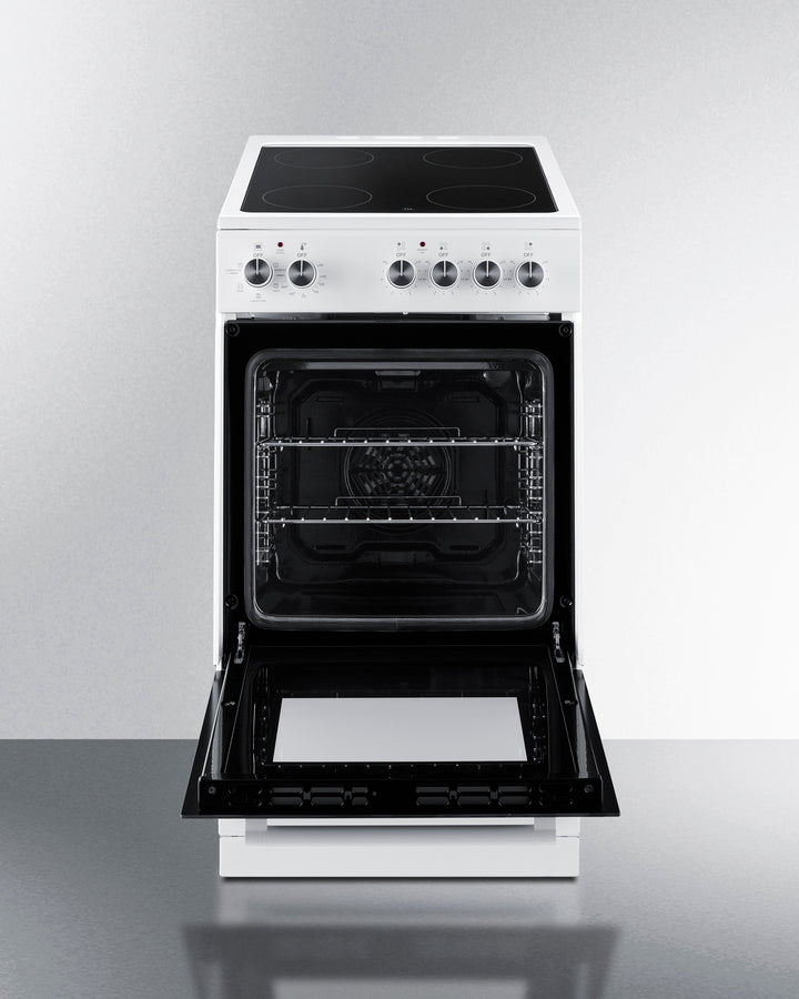 Summit REXT20W 20″ Wide Slide-In Electric Range – Smooth Ceramic-Glass Top, 1.87 cu ft Oven, White Finish