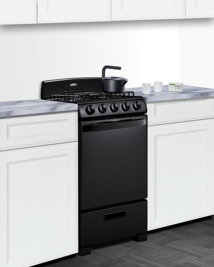 Summit RG201B 20″ Wide Gas Range – Jet Black, 4 Sealed Burners, 2.3 cu ft Oven
