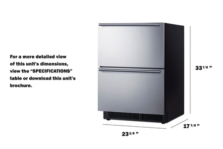 Summit SDHDR2446 24″ Wide 2-Drawer All-Refrigerator – 3.4 cu ft, 18″ Deep for Undercounter Use