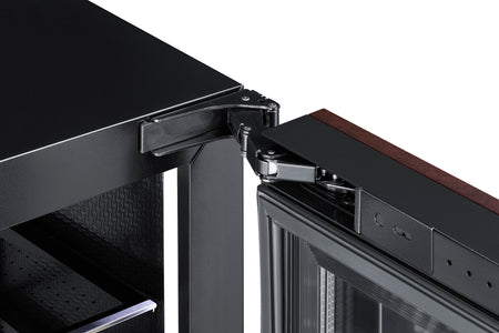 Model ALFZ53IF is a 24" wide all-freezer that can be paired with our AL54PNR all-refrigerator. Sized at just 32" high, it can easily be installed under an ADA compliant counter. The fully finished black cabinet allows freestanding use, while the front-breathing system also allows this unit to be built-in with minimum clearance. The reversible stainless steel door features a European-style fully articulating hinge for zero clearance opening. We include a 2-piece bracket kit that allows easy installation of overlay panels to create a custom look that can seamlessly blend into your existing cabinetry design (panel size: 28.38" H x 23.4" W; maximum weight: 10 lbs.). This unit has a flush back for easy cleaning and a right angle plug for a better fit. A factory-installed lock is located in the kickplate.