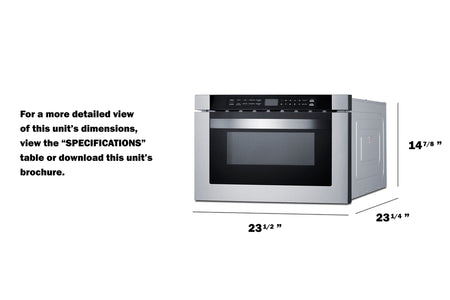 Summit MDR245SS 24″ Wide Built-In Drawer Microwave – 1.2 cu. ft Capacity, Stainless Steel Trim & Black Door