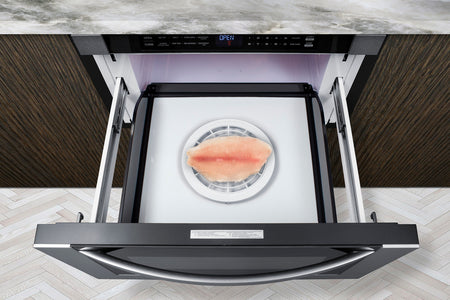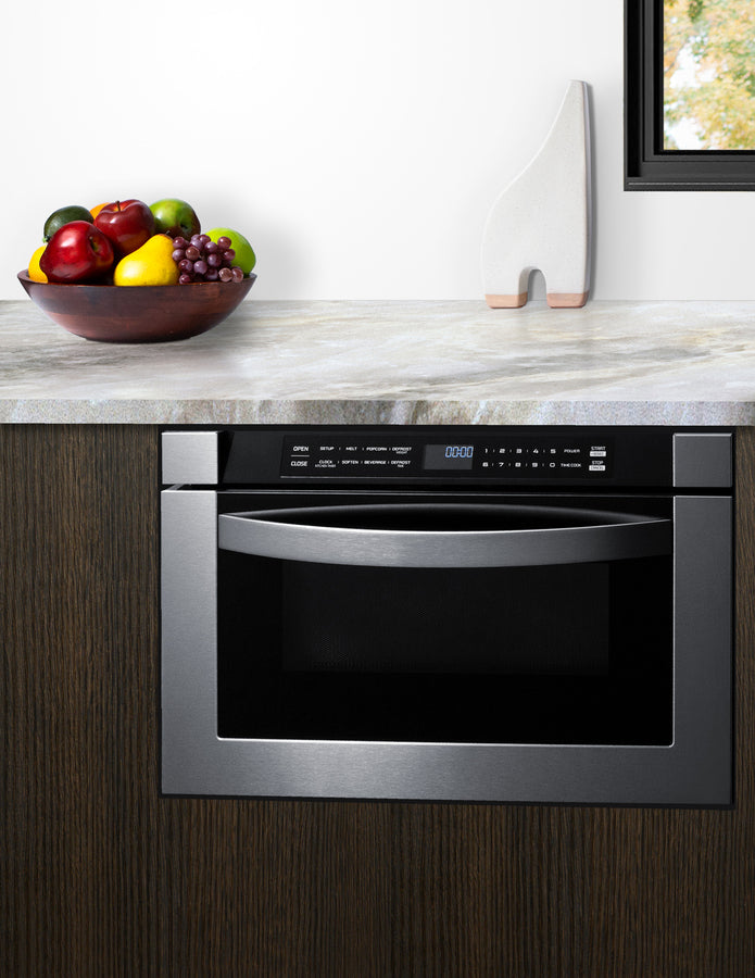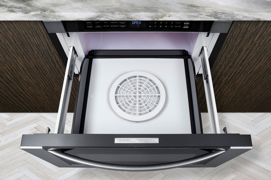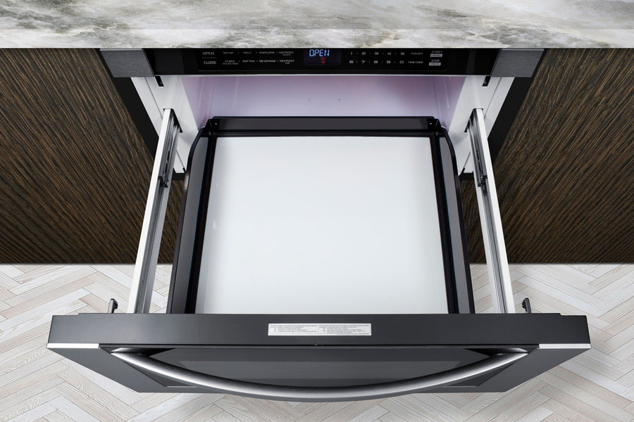 Summit's innovative one-touch drawer microwave brings new style and function under the counter.
